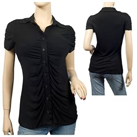 This plus size top is a chic addition to your casual wardrobe. Plus size blouse features ruched short sleeves. Button front design with collars. Will go favulously on top of blue jeans.