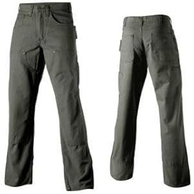 When you're reshingling a roof or building a new deck, wear the loose-fit Carhartt Men's Double Front Canvas Carpenter Jeans. The chap-style front and cleanout bottoms accommodate knee pads, so you can bear to kneel down again tomorrow. These work pants have a mid-rise and sit slight below the natural waist. Double utility bands give you a quick place to stash tools and equipment, and the 19-inch leg openings fit over your work boots nicely.