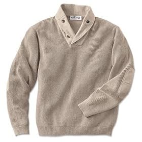 Warm, comfortable, and easy to move in, our utilitarian sweater is modeled after the sweater GIs wore in the field during the long winter of 1944. Warm, comfortable, and easy to move Our special shawl collar buttons up tight to cut the cold. Knit of pure cotton in a beefy but versatile half-cardigan stitch for maximum flexibility. Zambezi® Twill elbow patches and button placket. Ribbed cuffs, collar, and waist. In stone, black, olive, weathered navy. 100% cotton. Washable. Imported.Sizes: M(38-40), L(42-44), XL(46-48), XXL(50-52). Tall sizes 1½" longer in the body and sleeve.