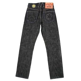 Yoropiko Starwars black denim jeans YORO1226. Yoropiko by Martin Yat Ming, super exclusive design, black raw denim jeans. Black embroidered storm troopers on sides, embroidered starwars logo/trooper back pockets. Removeable 18k gold rhodium finished copper waistband and fly buttons. Vintage cut model 1002, red selvedge, raw denim. Gold metal thread embroidered belt loop and flower. Deer skin leather patch on waistband. Black velvet embroidered logo presentation bag. Made in Hong Kong. SKU-YORO1226.