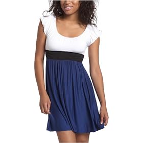 I just bought this dress on amazon.com and I love it. The material is comfortable and it looks just like the picture. I don't have much else to say other than I love it! :) The black part of the dress hugs your body while the blue is relaxed and flattering. My only precaution would be: watch out if it's windy. This material is nice, but it won't cling to your body! ;)