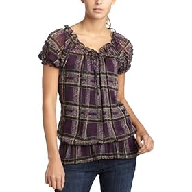 Smocked neck Drop waist printed peasant top.