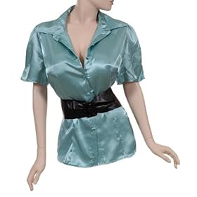 This was a nice blouse for the price. The package arrived on time and in good condition. I bought the blouse to go with a cream skirt I already had. It looked very good with my skirt and fit well. I liked the wide black belt added a nice touch to the look.